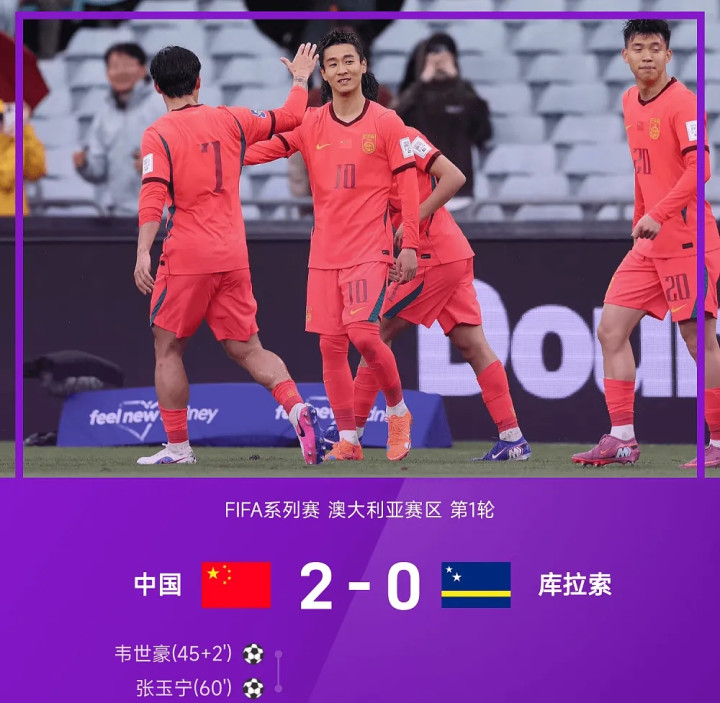 26赛季FIFA系列赛澳大利亚赛区第1轮,中国以2-0轻取库拉索。上半时比赛,张玉宁助攻韦世豪破门,下半时张玉宁破门完成传射好戏。在国足赢得这场比赛的见效后,邵佳一也迎来捏教国足的开门红。