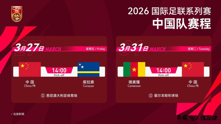 赛事预报:3月31日14点,国足将濒临非洲球队喀麦隆。