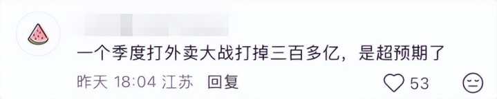 有东说念主说这份财报超预期,有东说念主反驳:一个季度外卖大战打没三百多亿,是超预期了哈。