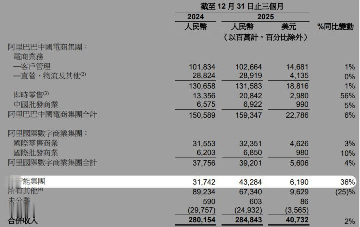 从财报来看,云智能集团整挺好,收入 432.84 亿元,同比增长加快至 36%,AI 有关居品收入纠合第十个季度的三位数同比增长。