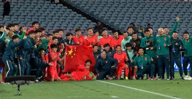 比赛适度后,中国男足赛后举座东说念主员进行大合影,金年会官网首页入口相配高兴肠他们手拉国旗,有的持拳,有的竖起大拇指。